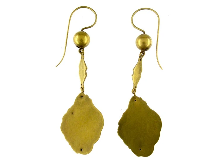 A pair of 15ct62.5% pure gold (or 625 parts pure gold and 375 parts other metals). Popular during the Victorian, Edwardian and Art Deco eras but was discontinued in the mid-1930s. VictorianJewellery made in the the Victorian era (1839-1901). drop earrings, circa 1870.