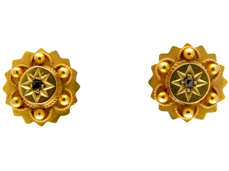 A good every day pair of 15ct62.5% pure gold (or 625 parts pure gold and 375 parts other metals). Popular during the Victorian, Edwardian and Art Deco eras but was discontinued in the mid-1930s. gold round earrings with the tiniest of diamonds in each one. They were made circa 1880 and are markedA small hallmark or punchmark either on the inside or outside of the shank which indicates the metal is platinum, gold or silver. If the metal is gold, it could also indicate the carat, e.g. 18 carat gold. 15ct on the backs.