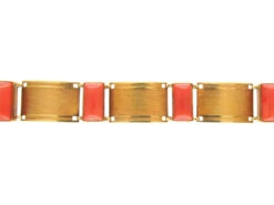 This is a wonderful and very stylish 18ct75% pure gold (or 750 parts pure gold and 250 parts other metals) gold bracelet. The design is unusual with convex and flat circles that catch the light in an interesting way. It was most likely made in Italy in the 1970s. It is elegant and easy to wear.