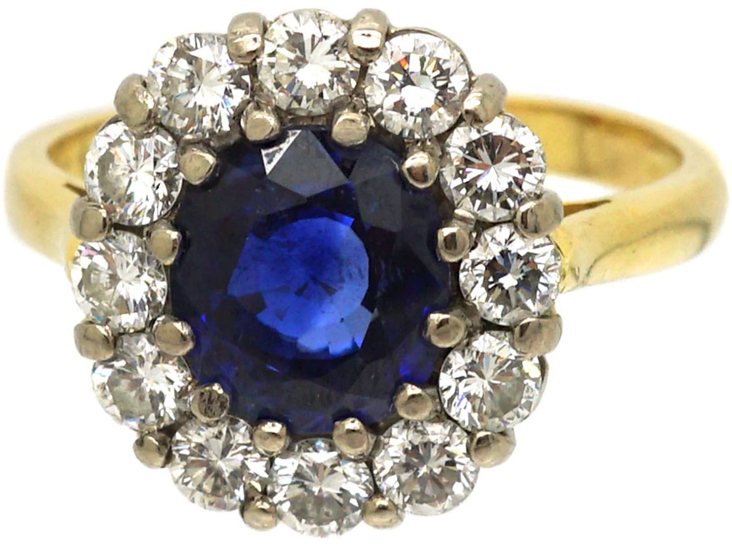 This is a classic engagement ring that was made in Birmingham in 1993 by Deakin & Frances. Founded in 1786, The company was originally known as Deakin and Moore from 1848–1879. Charles Deakin retired in 1881 and John Francis joined the firm. The company then became known as Deakin & Francis, becoming a limited company in 1902. Deakin & Frances are famous for high quality jewellery and this ring is no exception. The two and a half caratsThe unit of weight for a diamond or other gemstone and also for a pearl. Abbreviated ‘ct’, 1 carat is equal to 0.2 grams. In reference to gold, a unit of purity or fineness of gold and gold alloy, expressed as a number out of 24 parts by weight, e.g. ’24 carat’ signifies pure gold, ’18 carat’ 18/24th gold in the alloy, et cetera. Also abbreviated as ‘c… sapphireBlue is the best-known colour for this gemstone but it can be found in all colours of the spectrum. After diamond, sapphire is the hardest gemstone.