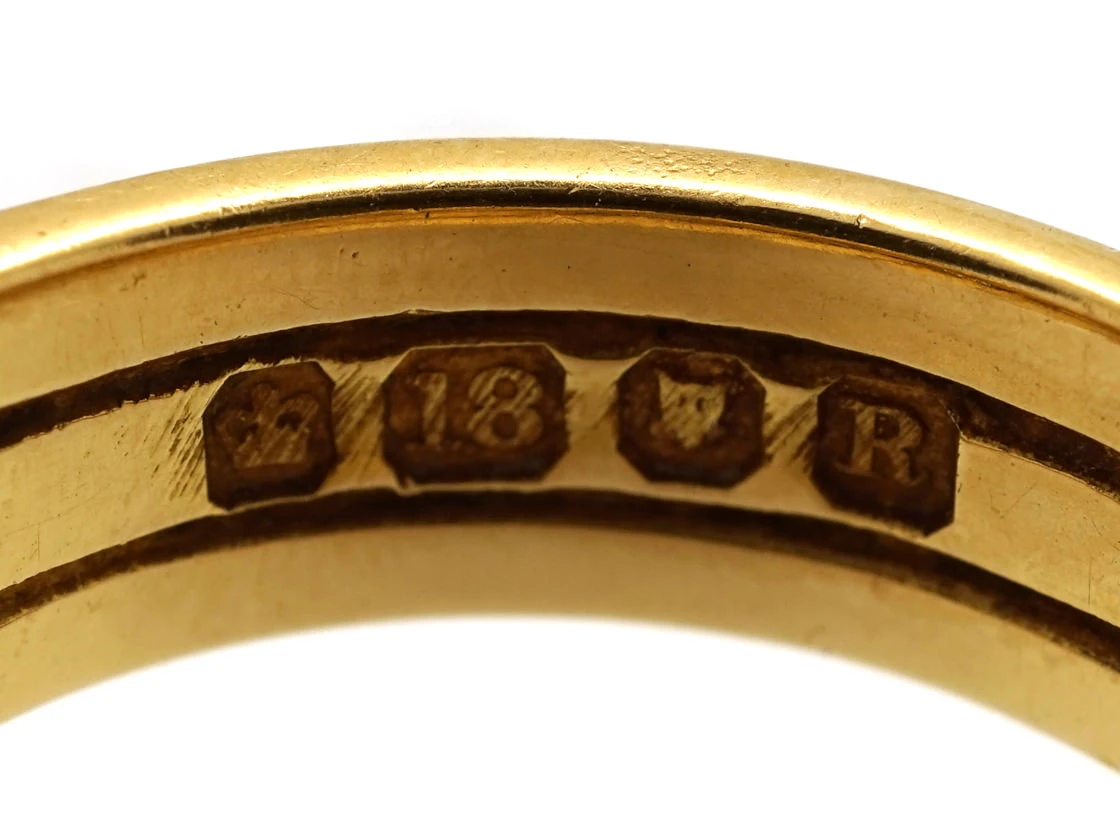 A smart 18ct75% pure gold (or 750 parts pure gold and 250 parts other metals) gold plaited VictorianJewellery made in the the Victorian era (1839-1901). ring.