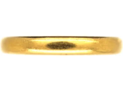 This 22ct91.6% pure gold (or 916 parts pure gold and 84 parts other metals) gold bandA type of ring which is an equal width all the way round. They are traditionally used for wedding rings.