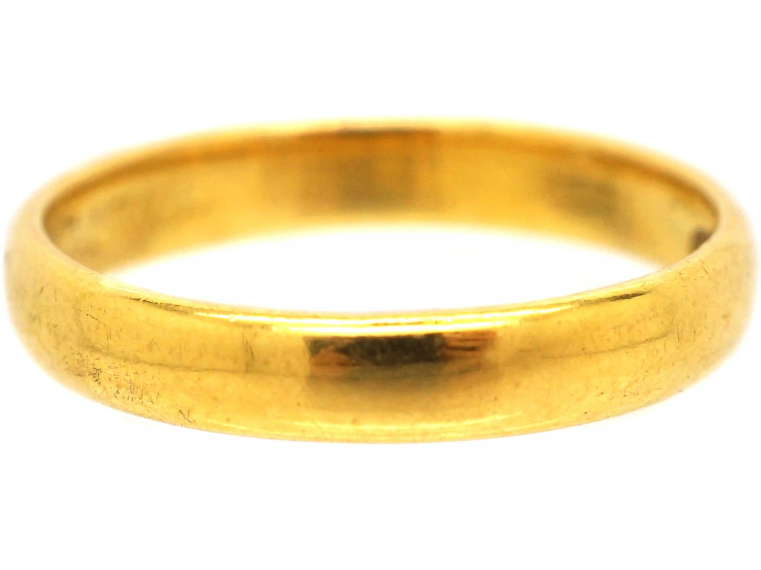 A comfortable 22ct91.6% pure gold (or 916 parts pure gold and 84 parts other metals) gold wedding bandA type of ring which is an equal width all the way round. They are traditionally used for wedding rings.