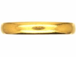 A medium to wide 22ct gold wedding band that was made in Birmingham in 1930. It is a large size and comfortable to wear. It looks so stylish as is a lovely buttery yellow colour. This ring can be sized to a larger size but due to the high cost of 22ct gold there will be an extra charge.