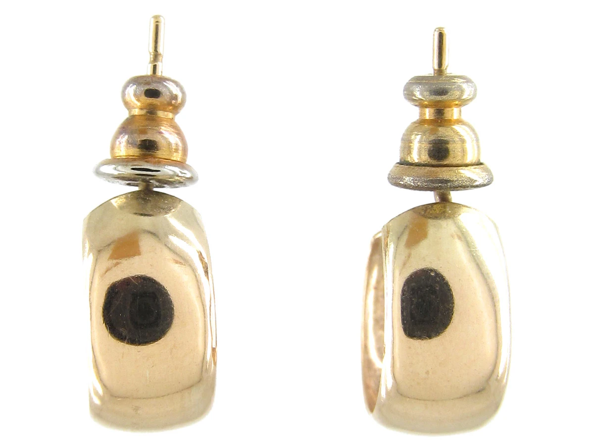 A simple every day pair of half hoop 9ct37.5% pure gold (or 375 parts pure gold and 625 parts other metals) gold earrings which look smart.