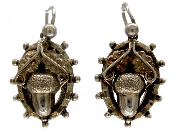 acorn earrings, circa 1880. I always buy acorn jewellery when I can find it. It is so quintessentially English. Out of an acorn grows the mighty oak tree. It is a symbol of good luck and fortune, and a reminder that the biggest tree was once a little acorn nut who stood his ground.
