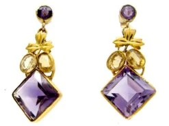 A nice design and combination of colours. The citrines and amethysts complement each other. Made circa 1890 in 15ct62.5% pure gold (or 625 parts pure gold and 375 parts other metals). Popular during the Victorian, Edwardian and Art Deco eras but was discontinued in the mid-1930s. gold.
