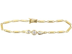 A lovely 14ct58.5% pure gold (or 585 parts pure gold to 415 parts other metals) gold bracelet that was made circa 1920 in Austria. It has been set with three diamonds within open work repoussee settings. It is a light and pretty look when worn and would make an ideal gift.
