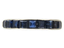 made circa 1925. This type of eternity ring must fit the finger as you cannot size it. The sapphires are tram-line set with no dividers.