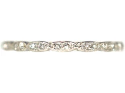 that is made of platinumDerives from the Spanish word ‘platina’ meaning ‘little silver’. Acknowledged since the 1900s, platinum’s durability and natural brightness has been and still is today highly treasured A metallic element prized for its rarity, whiteness, high tensile strength and insusceptibility to corrosion, platinum first became widely used in jewellery in the late ninete… and has been set with small diamonds two by two in scalloped settings. It was made in the 1920s and is as wearable now as it was then.