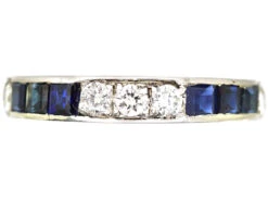A lovely Art Deco platinum eternity ring that has been set with alternate sections of calibre cut sapphires and round diamonds. It was made circa 1920 and can either be worn on its own or stacked with similar bands.