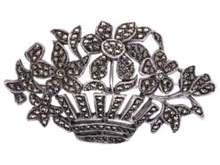brooch of flowers in a basket. It is set with marcasites (iron pyrites) and was made circa 1920-1930.