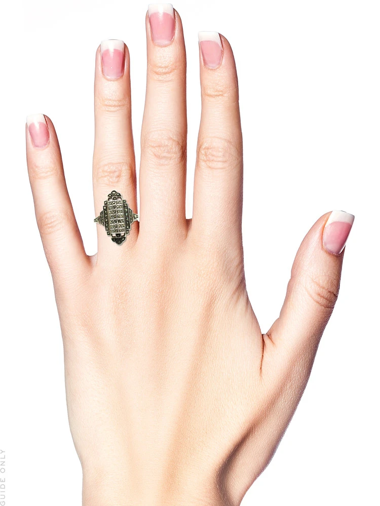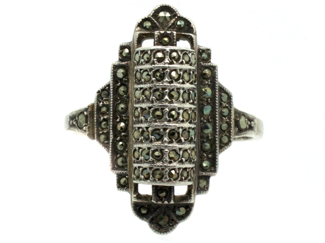 and is set with small marcasites (iron pyrites).