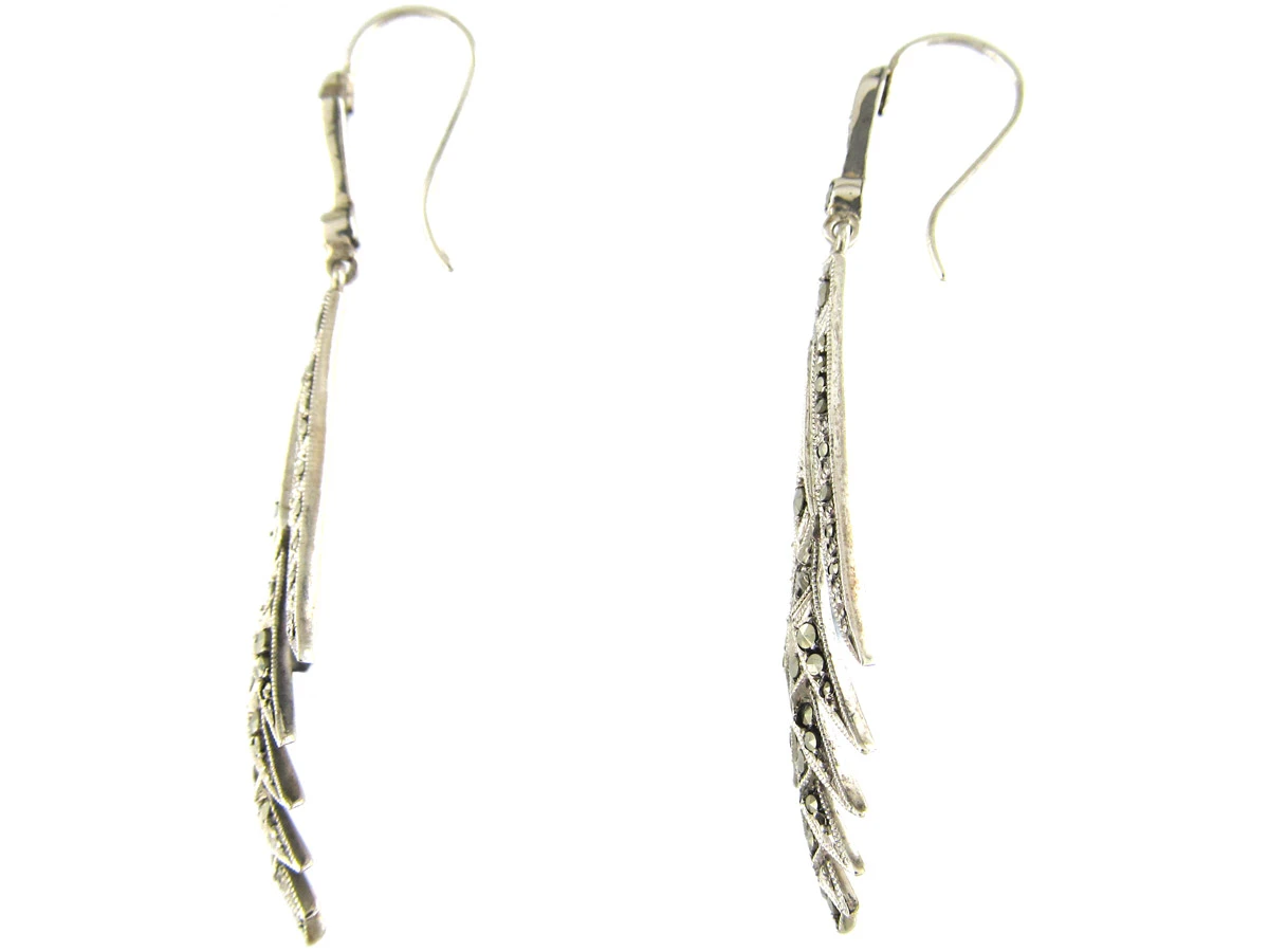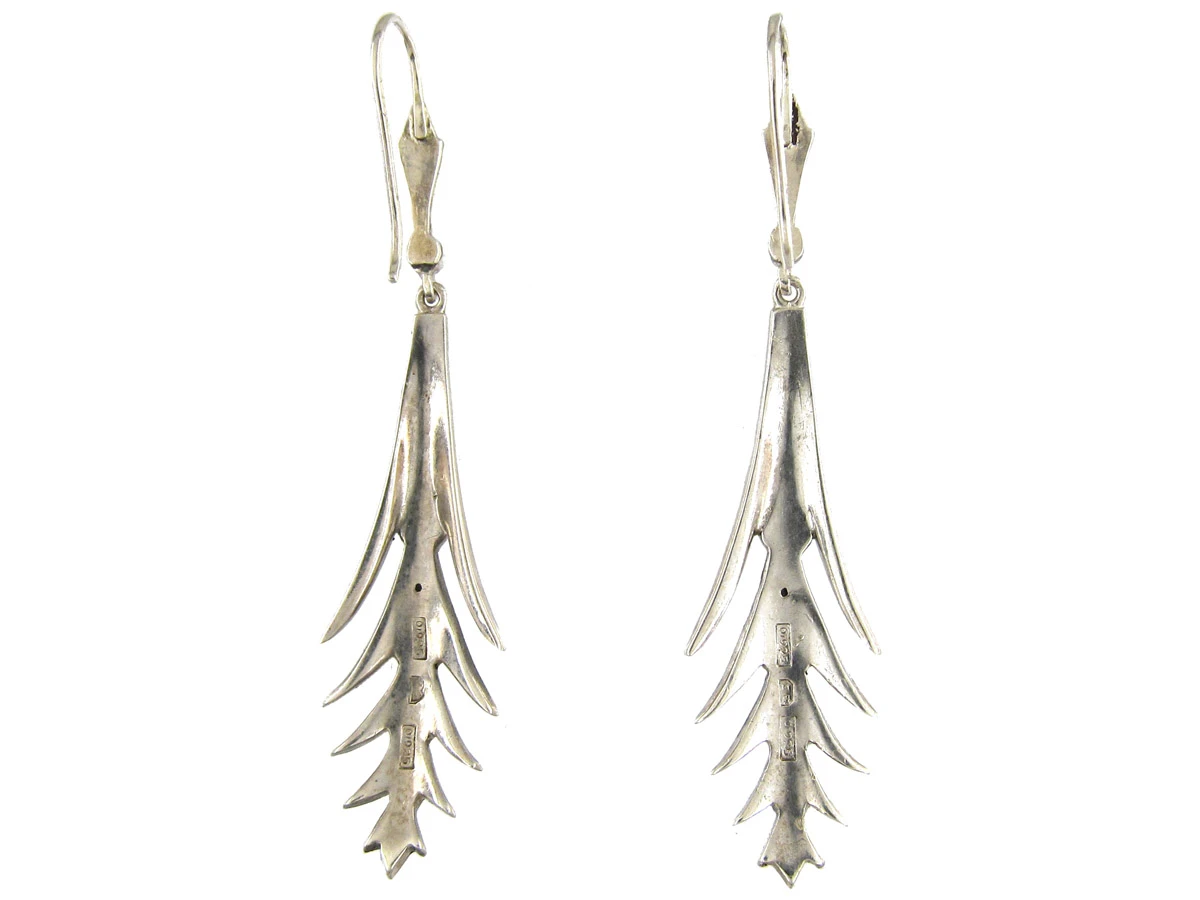 Very striking and pretty on the ear these earrings are as modern looking now as they were in the 1920s. They are silverA metallic element which is malleable and ductile, and white in colour, making it ideal for use in jewellery. It is usually mixed with copper to improve its hardness.