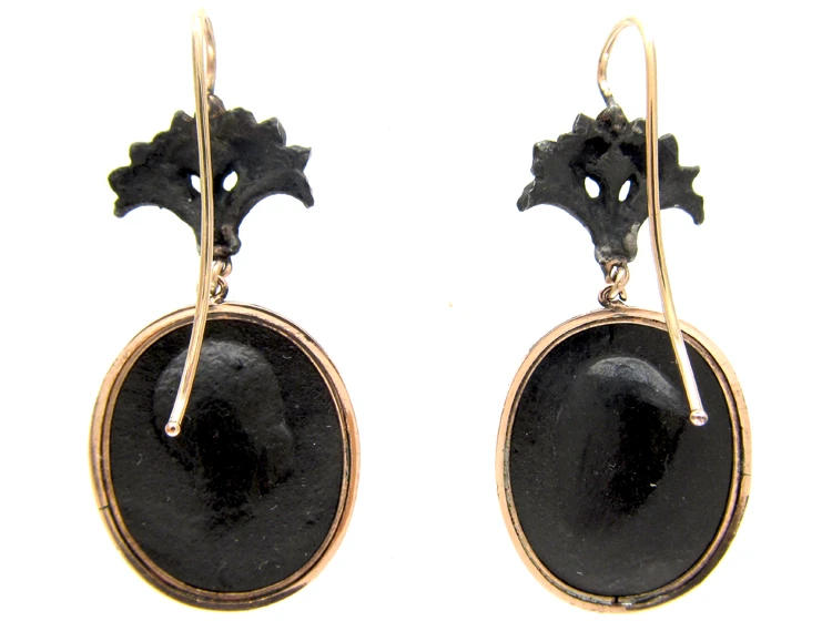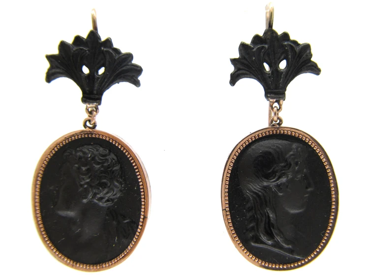 A wonderful pair of Berlin IronA black-lacquered cast iron material used in jewellery making beginning c. 1790. Originating in Silesia, Prussia at the Gleiwitz Foundry, the Royal Berlin Foundry and a manufacturer in Horovice, Bohemia all produced jewellery in this manner. The French subsequently followed suit, Fer de Berlin, after Napoleon absconded with the casting moulds on his march on… drop earrings which weremade in the Franco Prussian war period.