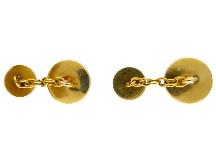Lovely depictions of a red setter and a bulldog – each beautifully painted using reverse intaglioAn engraved stone, the opposite of a cameo, with a recessed design cut below the surface of the stone. Intaglio designs are common for signet rings and fob seals. carved out of rock crystal.