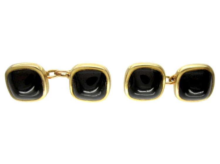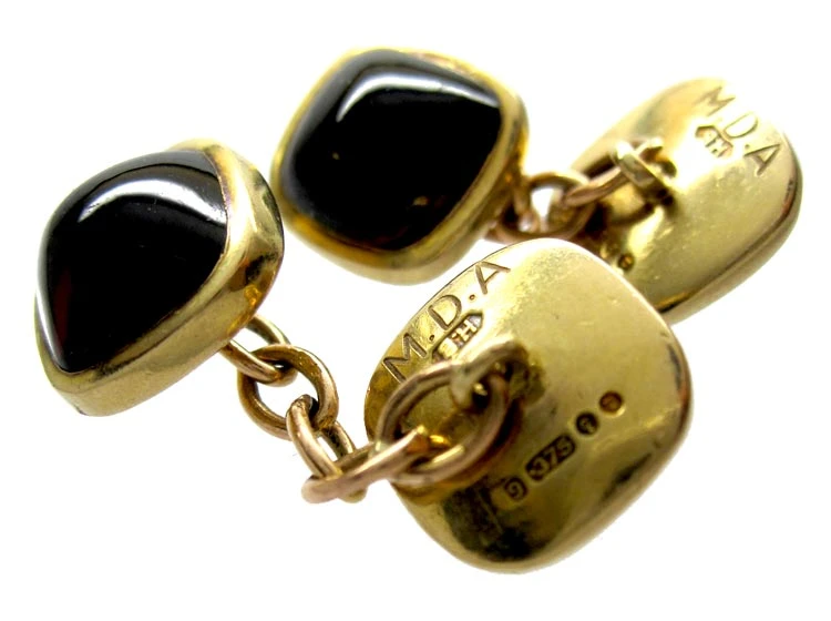 garnetDescribes a group of several closely related minerals. Garnets come in a variety of colours, however the most common colour is dark red. In descriptions, ‘garnet’ tends to refer to dark red stones unless otherwise specified. cufflinks, set in 9ct37.5% pure gold (or 375 parts pure gold and 625 parts other metals) gold. Smart to wear on a white or cream shirt.