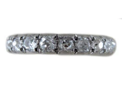 A pretty closely set bright diamondA precious, lustrous gemstone made of highly compressed carbon. Diamonds are one of the hardest materials known to mankind. Colours of diamonds range from colourless, yellow, orange and brown to almost black. Natural coloured (or ‘fancy’) diamonds can be extremely rare. The cut, colour, clarity and carat weight of a diamond are the criteria jewellers use… eternity ringA ring given as a symbol of lasting affection, typically set with an unbroken circle of gems.