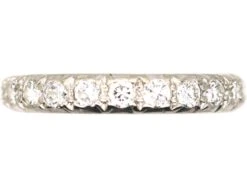 A charming platinumDerives from the Spanish word ‘platina’ meaning ‘little silver’. Acknowledged since the 1900s, platinum’s durability and natural brightness has been and still is today highly treasured A metallic element prized for its rarity, whiteness, high tensile strength and insusceptibility to corrosion, platinum first became widely used in jewellery in the late ninete… ring that was made circa 1900-1910. It has curved sides and has been set with well matched single cutA round stone with just 18 facets, top and bottom, used only on very small stones. diamonds in decorative pinched collet settings. This ring cannot be sized.