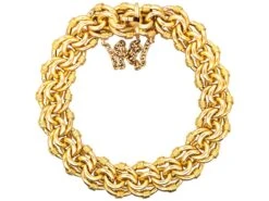 This is a wonderful heavy gage 15ct62.5% pure gold (or 625 parts pure gold and 375 parts other metals). Popular during the Victorian, Edwardian and Art Deco eras but was discontinued in the mid-1930s. gold bracelet that was made circa 1910. It is composed of interlocking curb links with a rope motif on the outer sides. The tongue clasp is hidden so it is a continuous design. It has a safety chainA small chain applied to a piece of jewellery with the purpose of adding additional security to prevent loss. On bracelets and necklaces a safety chain will often join the clasp ends should the clasp fail. On a brooch it is often attached to a small pin which is to be used in tandem with the main brooch pin. for added security.