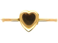 An unusual 15ct62.5% pure gold (or 625 parts pure gold and 375 parts other metals). Popular during the Victorian, Edwardian and Art Deco eras but was discontinued in the mid-1930s. Gold heart locket on a matching 15ct gold bangle. It was made circa 1900-1910 and the locket opens to reveal one section for photograph. It is in lovely condition and would make an ideal special present for someone who wears their heart on their sleeve!
