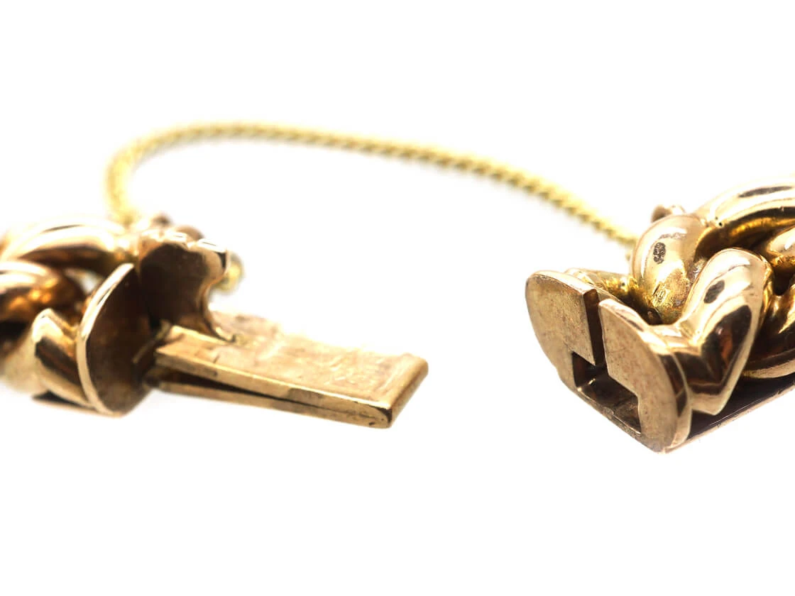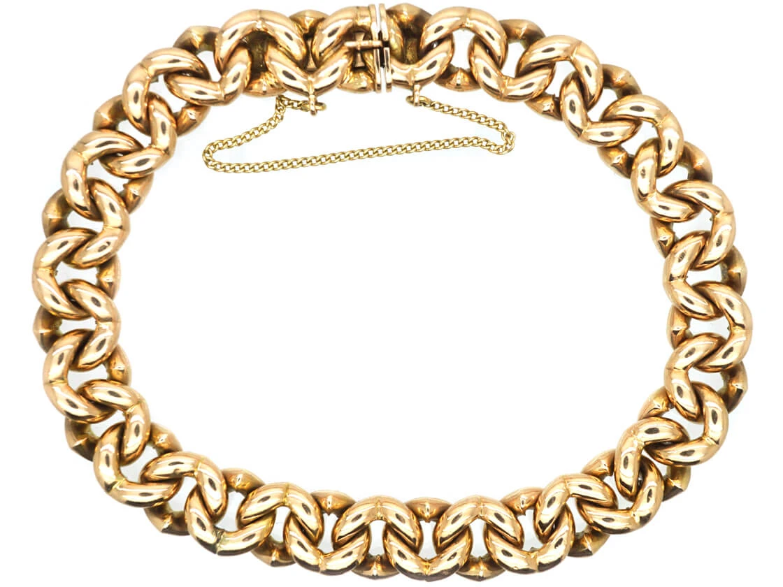 An unusual 15ct62.5% pure gold (or 625 parts pure gold and 375 parts other metals). Popular during the Victorian, Edwardian and Art Deco eras but was discontinued in the mid-1930s. gold bracelet that was made circa 1900-1915. The links are cleverly designed to look like hearts. It can be worn on its own or with other bracelets.