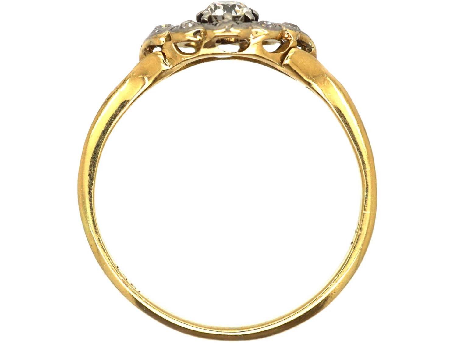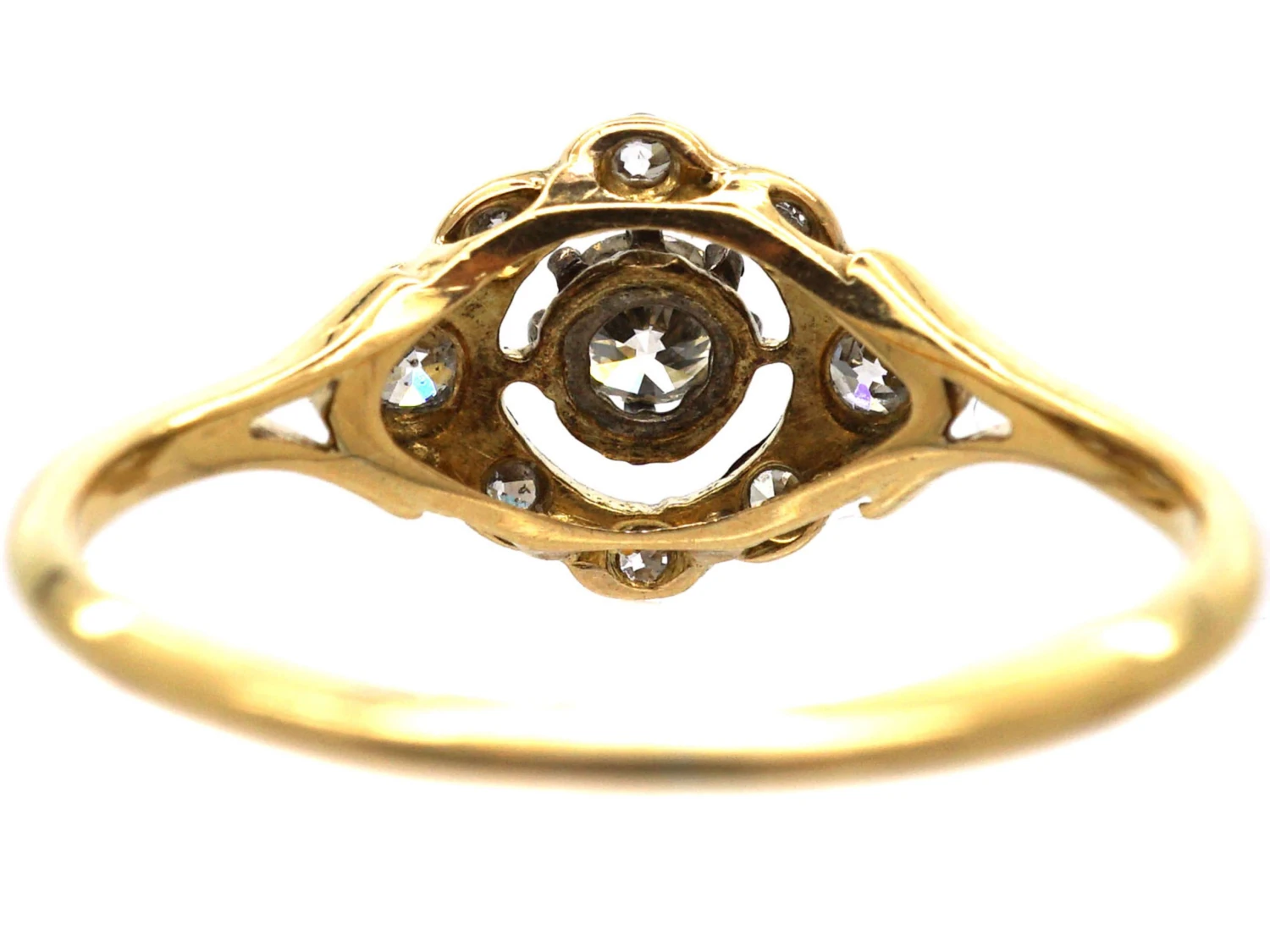 Stamped ’18ct’ for 18ct gold. Platinum topped.