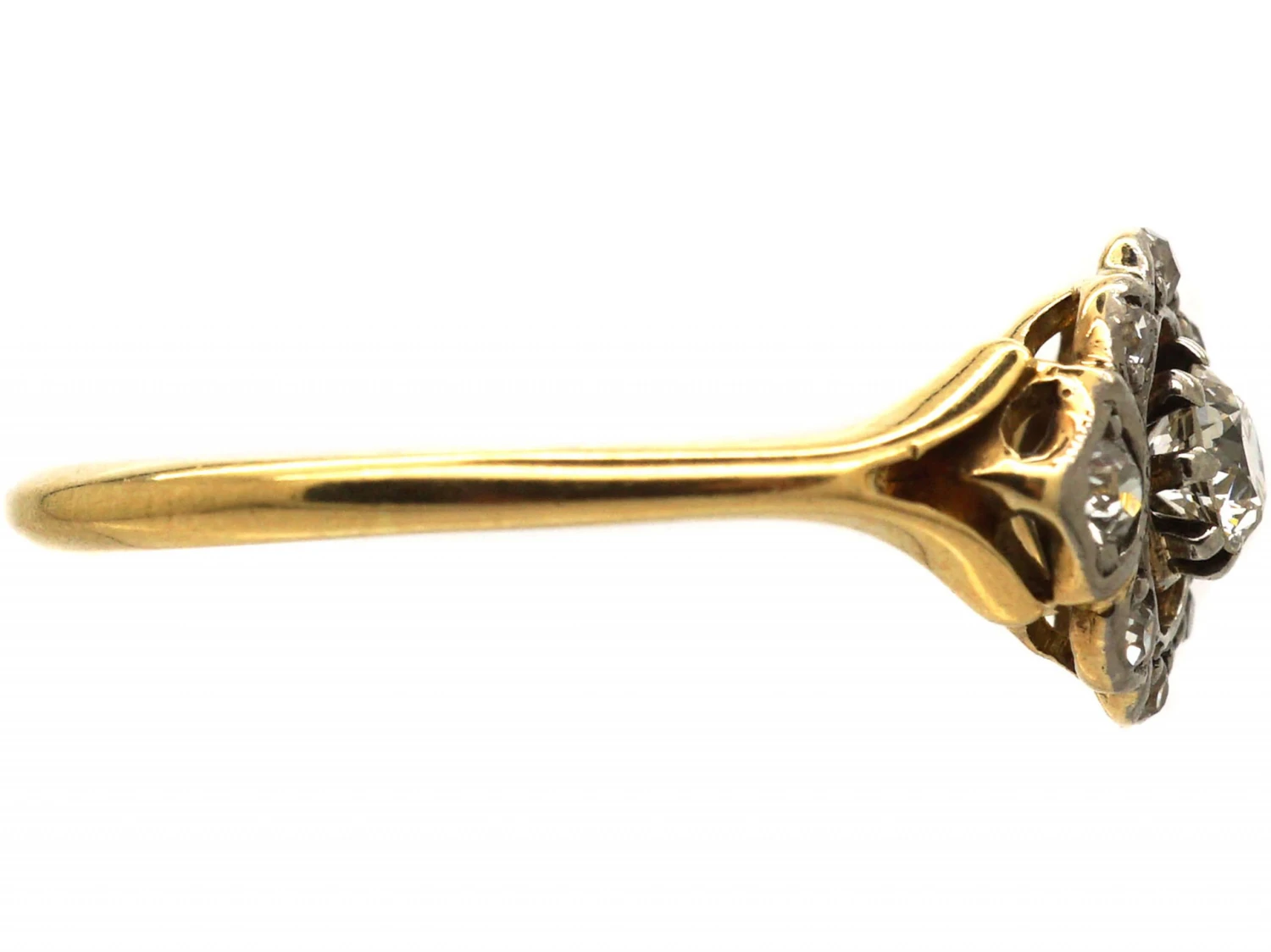 Sometimes it is more the design than the diamondA precious, lustrous gemstone made of highly compressed carbon. Diamonds are one of the hardest materials known to mankind. Colours of diamonds range from colourless, yellow, orange and brown to almost black. Natural coloured (or ‘fancy’) diamonds can be extremely rare. The cut, colour, clarity and carat weight of a diamond are the criteria jewellers use… that makes the impact. During the EdwardianJewellery made in the Edwardian era (1901-1914). era, jewellers were enjoying the versatility and durability of platinumDerives from the Spanish word ‘platina’ meaning ‘little silver’. Acknowledged since the 1900s, platinum’s durability and natural brightness has been and still is today highly treasured A metallic element prized for its rarity, whiteness, high tensile strength and insusceptibility to corrosion, platinum first became widely used in jewellery in the late ninete…, now easily workable thanks to the oxy-acetylene torch. They could now create delicate, openwork pieces into which they could set the diamonds now coming in from South Africa. And they could scale their work, from the impressive high end statement pieces to smaller, modest little rings, such as this. A dainty, handcrafted ring that would be ideal as an engagement ring.