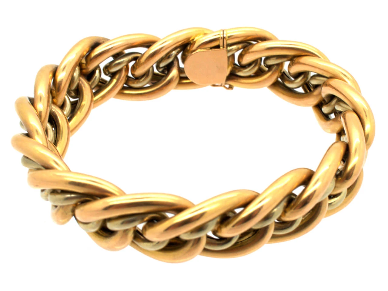 A wonderful 18ct75% pure gold (or 750 parts pure gold and 250 parts other metals) gold interwoven oval links bracelet. It is in great condition and looks fantastic on the wrist.