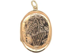 A very pretty 9ct37.5% pure gold (or 375 parts pure gold and 625 parts other metals) gold locket. On one side is a basket of flowers and on the other side sprigs of flowers. This locket is typical of the EdwardianJewellery made in the Edwardian era (1901-1914). period with it’s light and pretty design. What a lovely gift instead of a bunch of flowers!