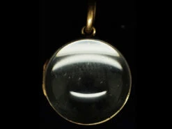 A wonderful fat rock crystal locket that hinges open. It is interesting to note that rock crystal is known as the âmaster healerâ and will amplify energy and thought. It absorbs, stores, releases and regulates energy and draws off negative energy of all kinds. It is also a 10th anniversary stone. You can put anything that is flat inside this locket and it will off course also magnify the content! It is 15ct62.5% pure gold (or 625 parts pure gold and 375 parts other metals). Popular during the Victorian, Edwardian and Art Deco eras but was discontinued in the mid-1930s. gold and was made circa 1900-1910.