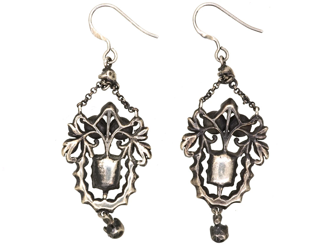 A pretty pair of silverA metallic element which is malleable and ductile, and white in colour, making it ideal for use in jewellery. It is usually mixed with copper to improve its hardness.