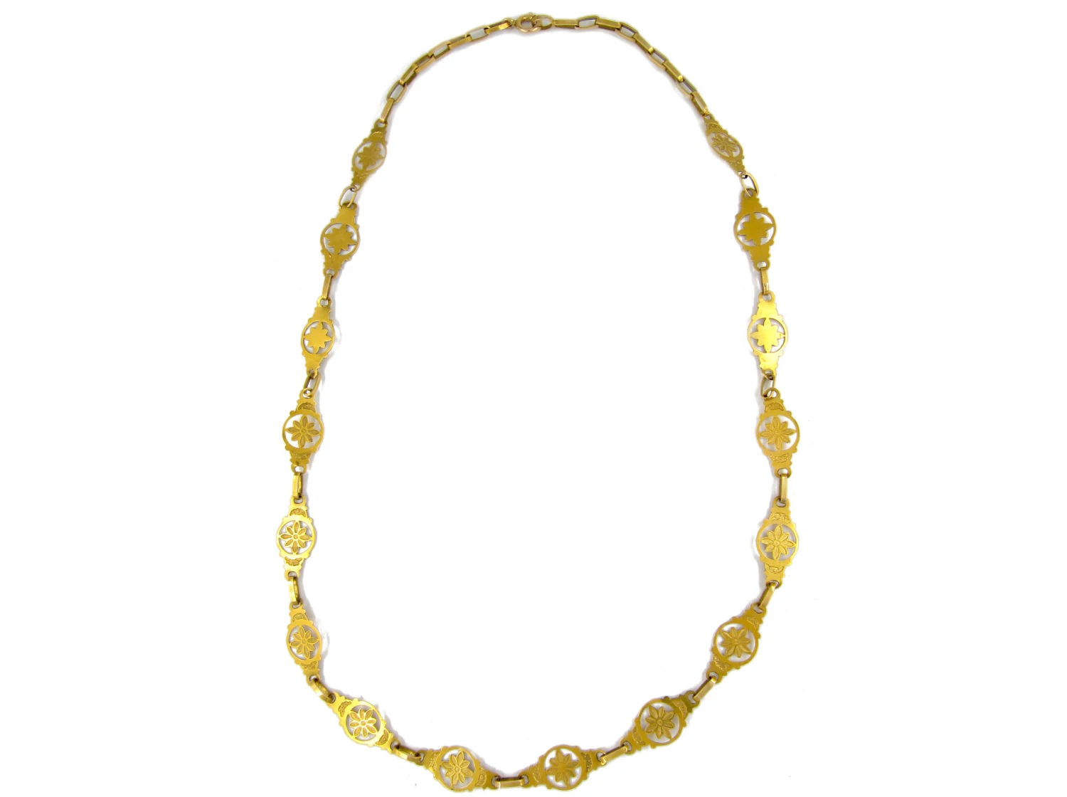 A very delicate and pretty French Regency period chain necklace. It is 18ct75% pure gold (or 750 parts pure gold and 250 parts other metals) gold and was made circa 1820.