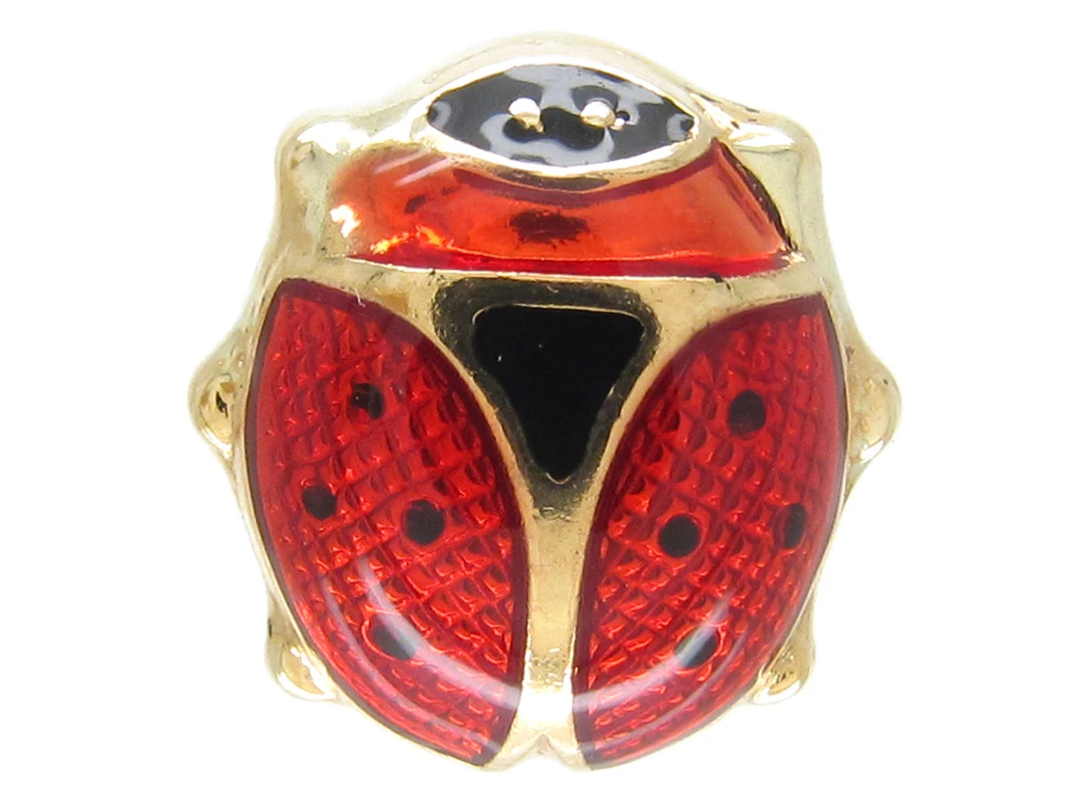 A really fun pair of enamelA pigmented glass-like material used in powdered form and fused onto the metal surface of a piece of jewellery. and 9ct37.5% pure gold (or 375 parts pure gold and 625 parts other metals) gold ladybird earrings which are in good condition and were made in the 1950s.