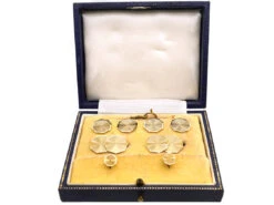 9ct & 18ct Gold Dress Set With Cufflinks Buttons & Studs Set With Mother Of Pearl & Sapphires
