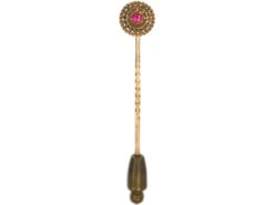 Victorian 15ct Gold Double Knot Rope Tie Pin Set With A Garnet