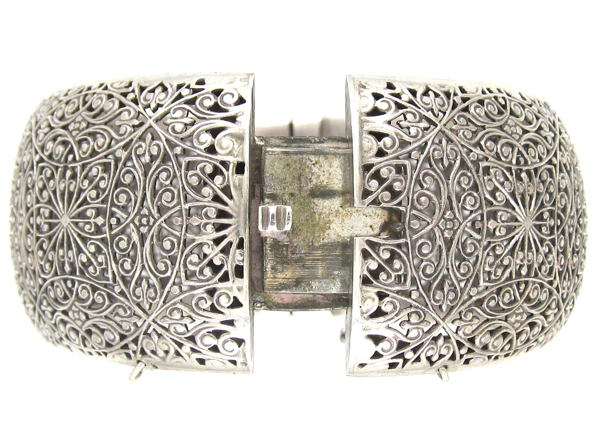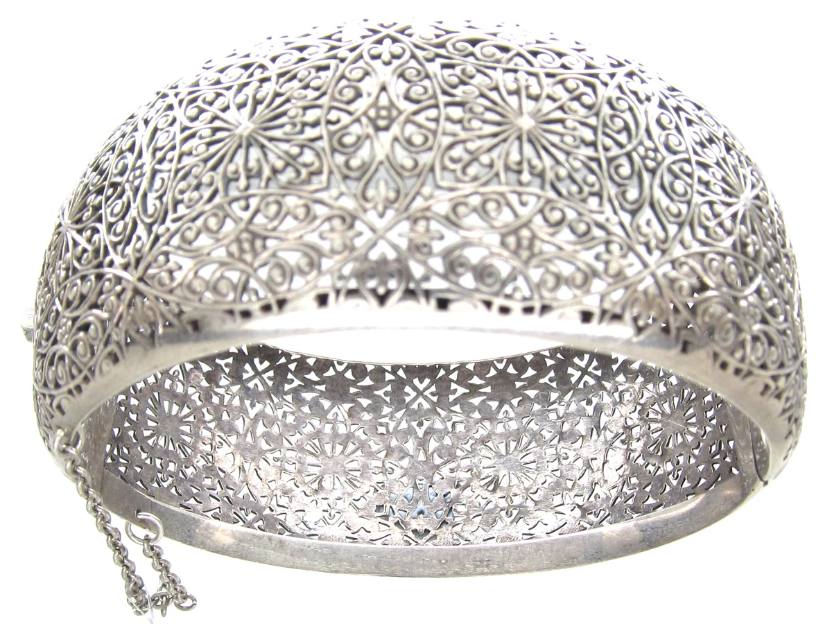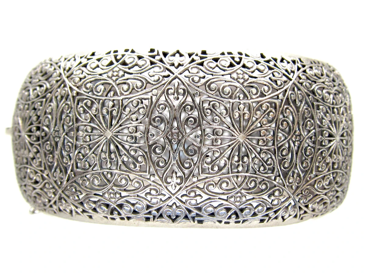 bangle which has been very finely worked all round. Although it is quite wide the pierced work lightens the look. It was made circa 1870.