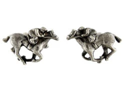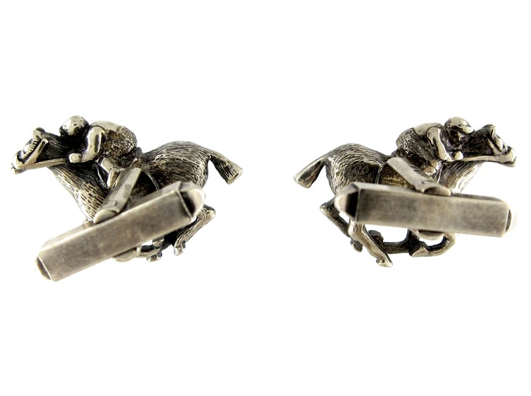 A well modelled pair of horse and jockey silverA metallic element which is malleable and ductile, and white in colour, making it ideal for use in jewellery. It is usually mixed with copper to improve its hardness.