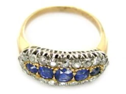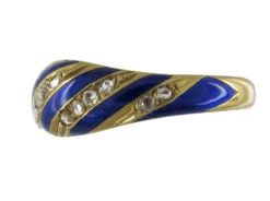Royal Blue Enamel & Rose Diamond 18ct Gold Early Victorian Ring