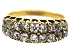 Victorian 18ct Gold Double Heart Ring Set With An Emerald & Diamonds