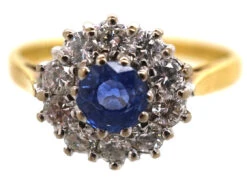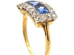 Art Deco 14ct Gold & Platinum & Diamond Three Stone Diamond Ring With Rose Diamond Detail