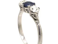 Early 20th Century Platinum, Sapphire & Diamond Three Stone Ring