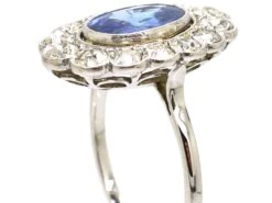 Early 20th Century Platinum, Sapphire & Diamond Oval Cluster Ring With Diamond Set Shoulders