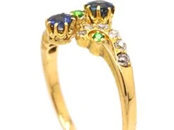 Edwardian 18ct Gold Crossover Ring Set With Green Garnets & Diamonds