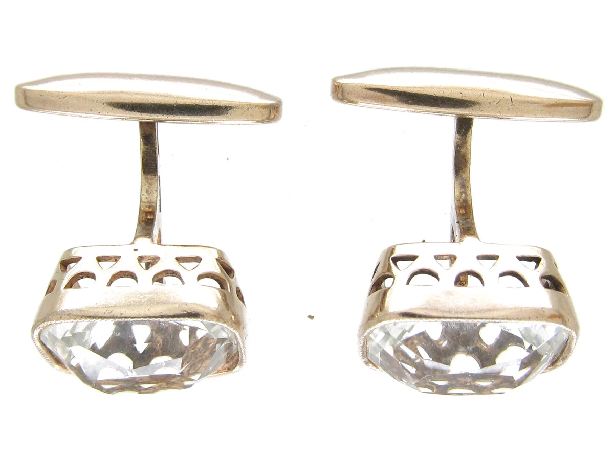 A fantastic pair of chunky rock crystal cufflinks which look really smart on a cuff. They have Russian marks.