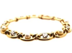 Early 20th Century French 18ct Gold Bracelet Set With Diamonds & Natural Pearls