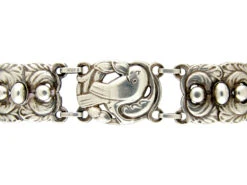 A good looking bracelet which is timeless. It was probably made in America as Jensen pieces were produced there during the war. It is not signed by Jensen, but has Genuine Norse Art engraved on the reverse.