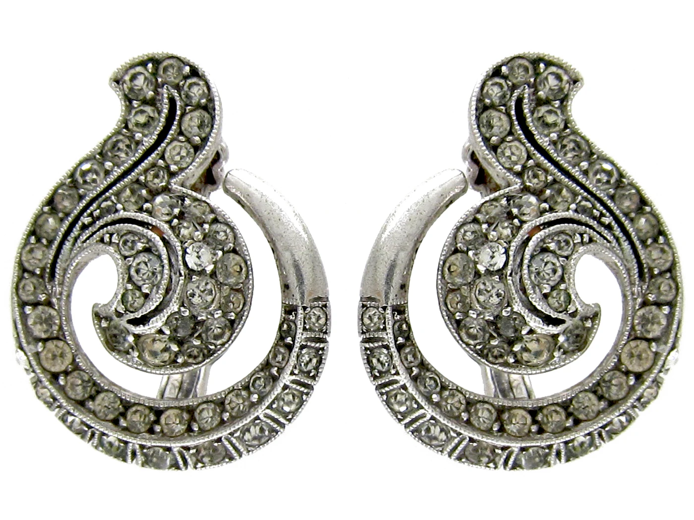 and pasteGlass made to resemble gem materials, which may be moulded, faceted, carved, etc. set earrings. They were made in the 1920s and are as versatile now as they were then.