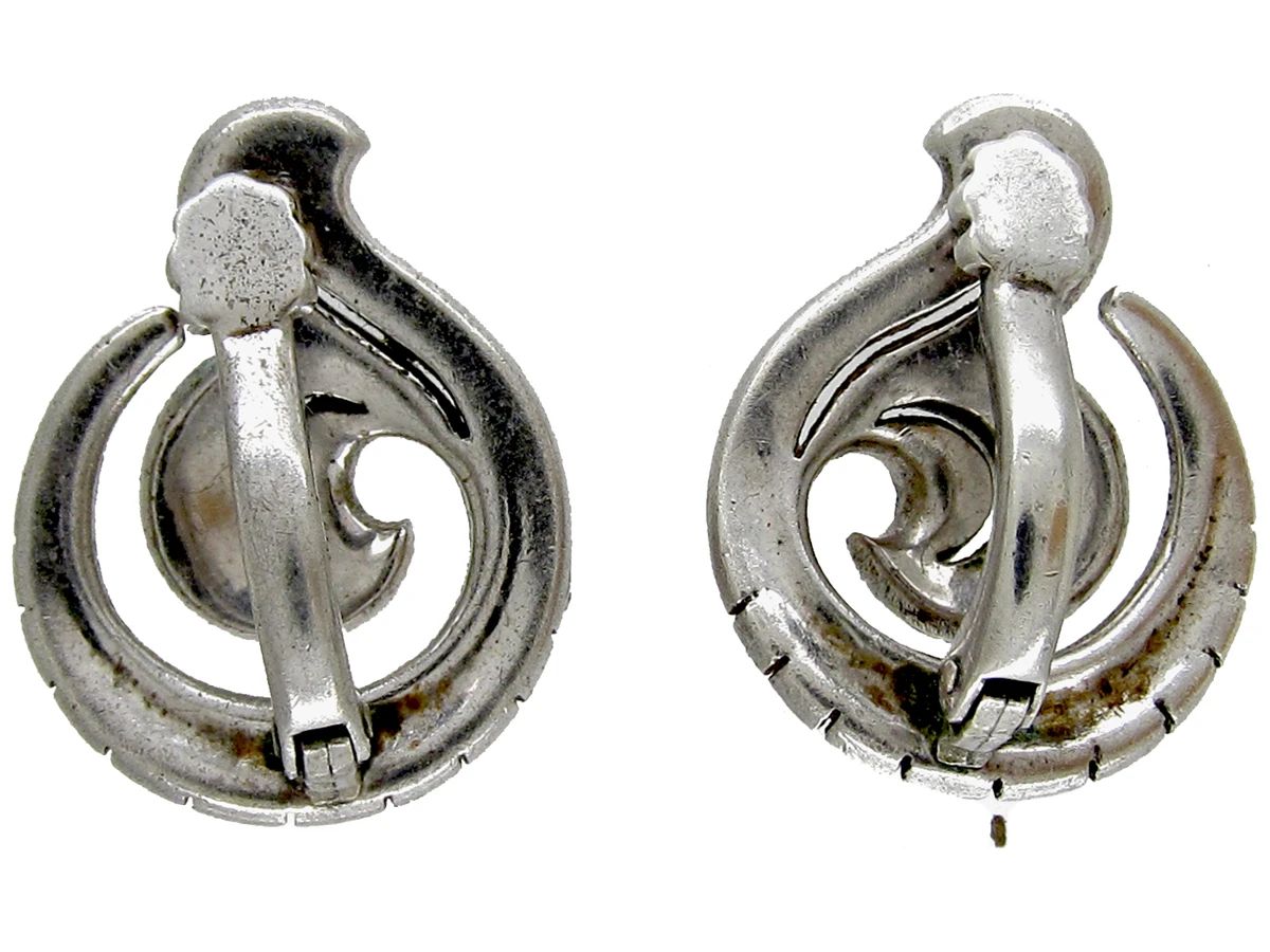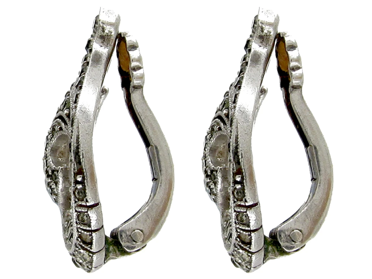 A neat pair of Art DecoA movement within the arts between the two Great Wars (1920-1935) across Europe and the US, characterized by its clean, geometric designs. The aesthetic was intended to celebrate an age of progress and the modernity of the machine. silverA metallic element which is malleable and ductile, and white in colour, making it ideal for use in jewellery. It is usually mixed with copper to improve its hardness.