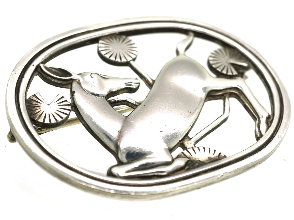 brooch depicting a kneeling deer designed by Arno Malinowski who worked at Georg Jensen in Denmark from 1936 – 1944 and again, from 1949 – 1965. He designed this brooch in 1937. It is in excellent condition.